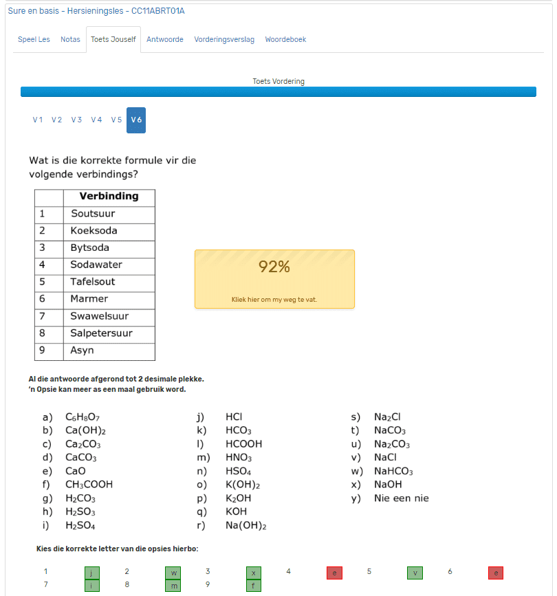 6. Afhangende van jou punt, kan jy nou besluit om die les en/of toets oor te doen, of jy kan die uitgewerkte ANTWOORDE bestudeer.
